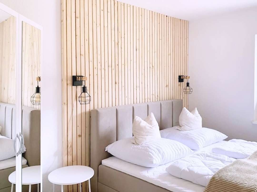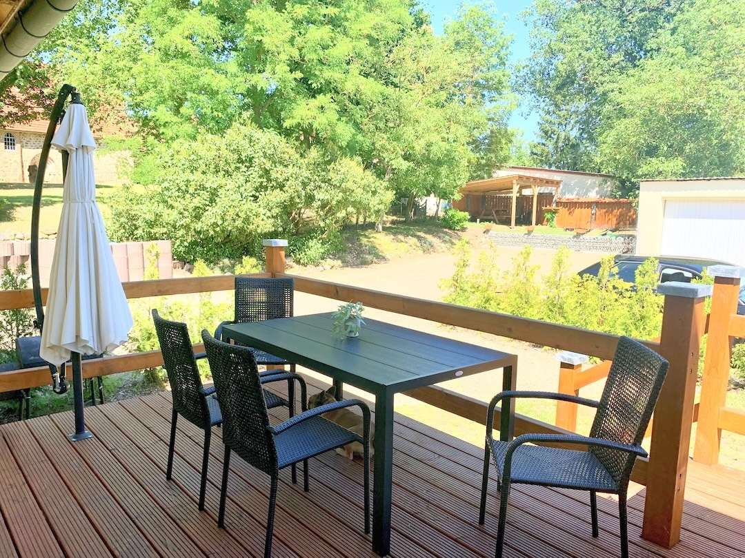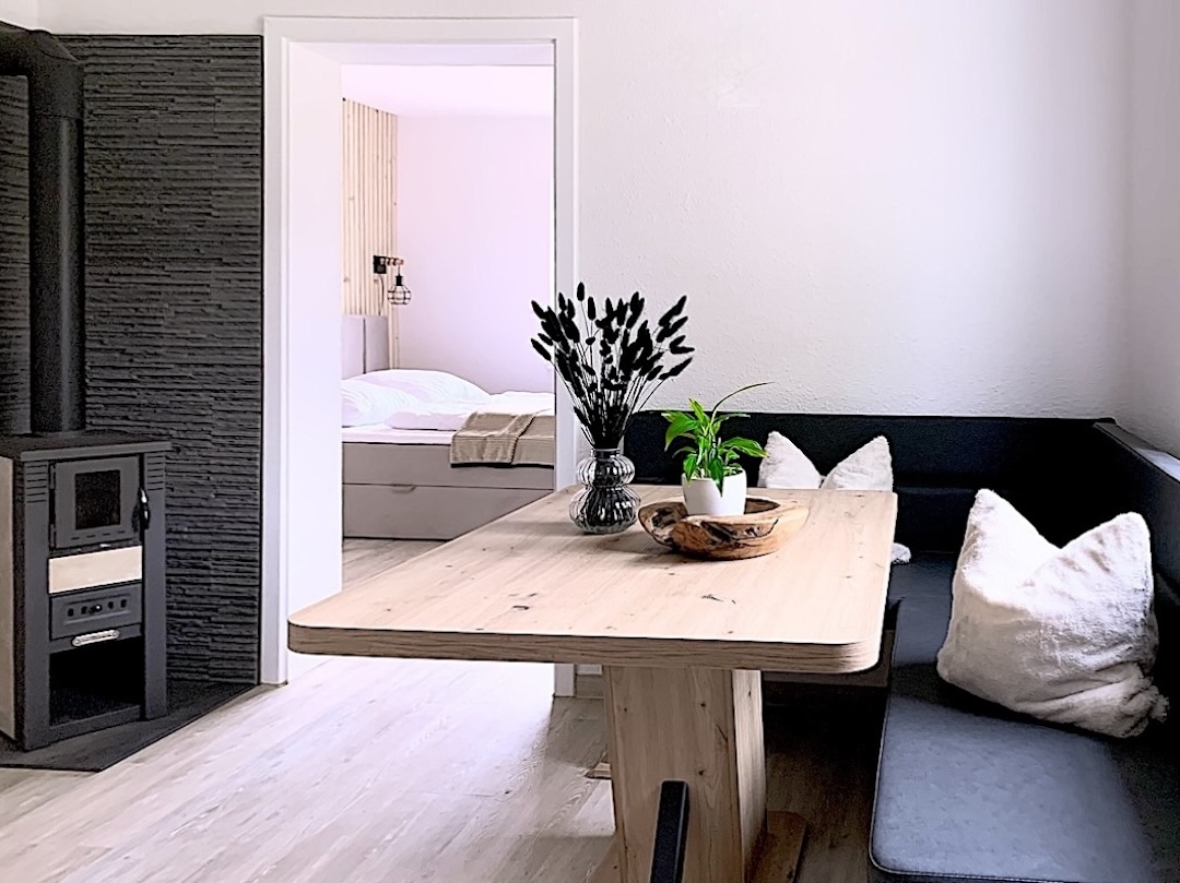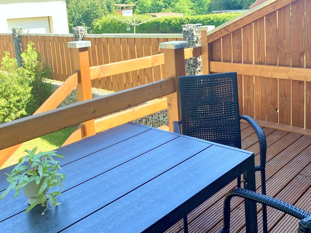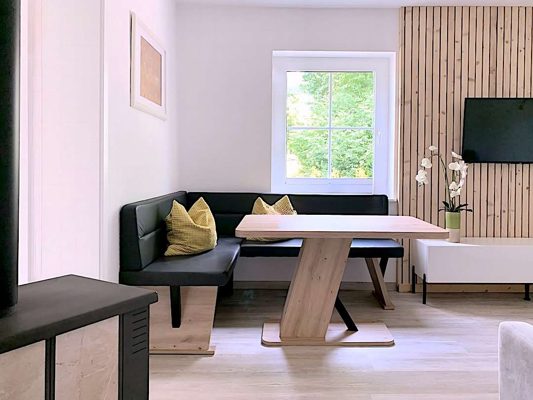 Ferienwohnung "Perle im Grünen" im Erdgeschoss des Hauses Ferienwohnung "Perle im Grünen" Für max. 4 Personen (40 qm² zuzüglich Terrasse) Wohnzimmer Kamin, Ecksofa, Essecke, Smart-TV Ferienwohnung "Perle im Grünen" Schlafzimmer Doppelbett 180 x 200, Einzelbett 140 x 200, Kleiderschrank, Ferienwohnung "Perle im Grünen" Küche Kühlschrank, 2-Plattenherd, Geschirrspüler, Kaffeemaschine, Airfryer (kleiner Backofen) Ferienwohnung "Perle im Grünen" Badezimmer Dusche, WC, Waschbecken mit Unterschrank, Spiegel, Haarfön, Seife, Toilettenpapier Ferienwohnung "Perle im Grünen" Terrasse Gartenmöbel, Grillplatz, Feuerstelle, Liegewiese, Terrasse, Auto-Stellplatz Newsletter erhalten Sie per Mail spezielle Angebote über Preisrabatte URLAUB buchen
