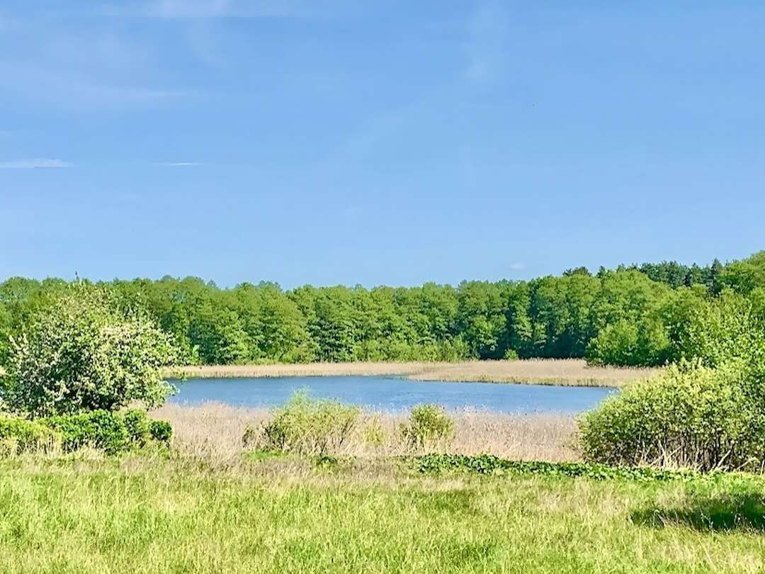 100 Meter vom Ferienhaus entfernt liegt der kleine Hofsee. Er hat eine Ausdehnung von 590x410. Morgens ein kleinen Spaziergang ist ein idealer Start in den Tag.
